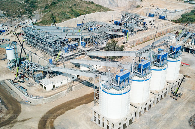 采用了振動給料機、顎式破碎機、圓錐破碎機、沖擊制砂機與圓振動篩的配置。