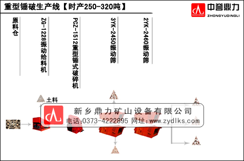 給料系統(tǒng)選擇倉(cāng)下給料機(jī)ZG1228,倉(cāng)下給料機(jī)穩(wěn)定給料,設(shè)備性能優(yōu)越,可以保證長(zhǎng)期供應(yīng)給料,并且可以根據(jù)需求,有漏土型,提高物料的潔凈度。破碎設(shè)備選擇重型錘式破碎機(jī)PCZ1512,這一型號(hào)在新鄉(xiāng)鼎力設(shè)備中屬于中型號(hào)的設(shè)備,破碎時(shí)產(chǎn)范圍是250-320噸,進(jìn)料最大粒度為750mm,該設(shè)備由2臺(tái)160KW電機(jī)提供動(dòng)力。篩分設(shè)備則選用兩臺(tái)3YK2450和兩臺(tái)2YK2460,這樣合理搭配可以篩分出五種不同規(guī)格的成品料,可以根據(jù)需求改換篩網(wǎng),以改變需求物料的粒度大小。