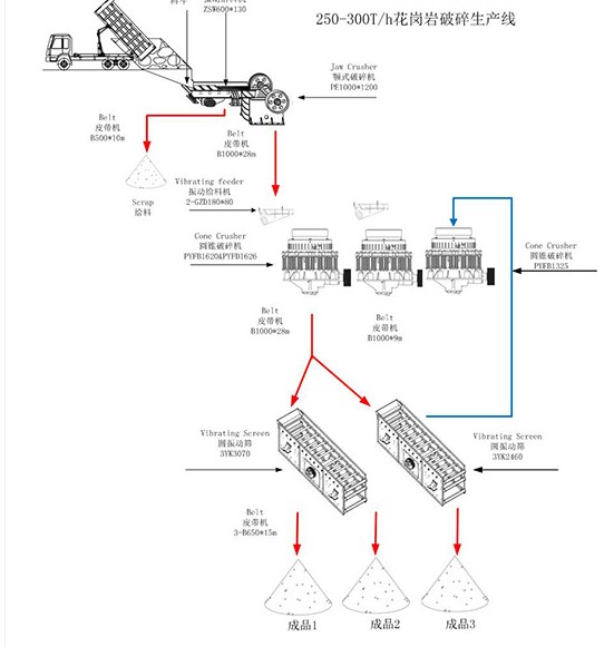 、時產(chǎn)250-300噸花崗巖碎石生產(chǎn)線配置方案