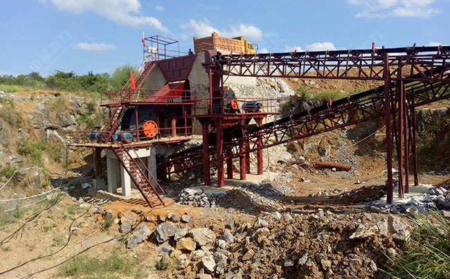 配置的設(shè)備可以為給料機(jī),錘式整形機(jī),振動(dòng)篩,可以破碎出多種建筑骨料。